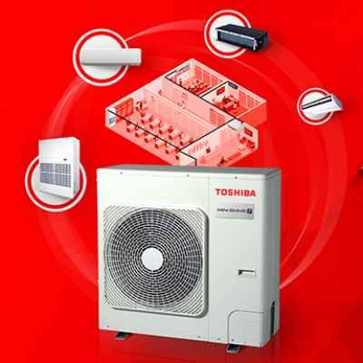 Toshiba MiNi-SMMS Air Conditioning lets you cool or warm as many as 9 rooms with a single System. The 4, 5, and 6 HP compact multi outdoor units are intended